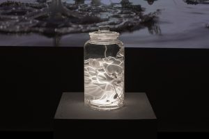 A partir de sistemas generativos, la obra transita estados mínimos y contemplativos hasta alcanzar procesos de eclosión y emergencia expansiva. La propuesta pone en cuestión nuestras ideas sobre la vida, la adaptación y la agencia, en una experiencia donde lo orgánico y lo digital se entrelazan en constante transformación.