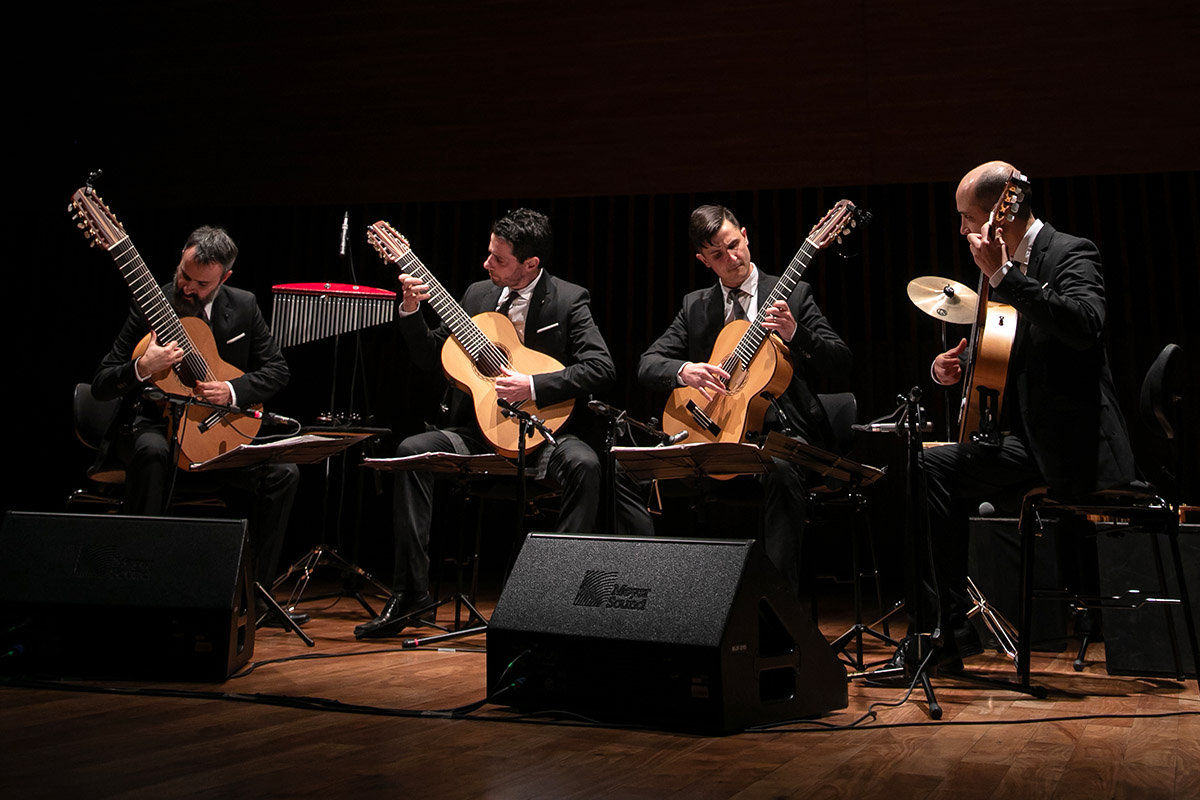 El grupo ofreció giras por Argentina, Brasil, Chile, Uruguay, Paraguay, Colombia, México, Estados Unidos, Francia, Alemania, República Checa, España y Países Bajos. Entre sus presentaciones más destacadas se cuenta el Concierto Andaluz, de Joaquín Rodrigo, con la Orquesta Sinfónica Nacional bajo la dirección de Pedro Ignacio Calderón; la participación en el proyecto Buenos Aires saluda a Berlín, con transmisión en directo a Alemania, y la actuación en la sala principal del Teatro Colón, distinción inédita para un cuarteto de guitarras en la historia de ese escenario. El ensamble también estrenó obras de compositores argentinos y tomó parte en el II Congreso de Cuarteto de Guitarras de Bogotá, donde fue reconocido como mejor cuarteto de guitarras de Latinoamérica.