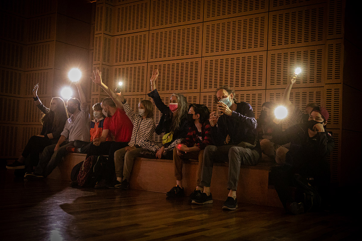 Esta obra es una acción colectiva. Las personas que concurran serán invitadas a crear imágenes espontáneas, usando la luz de sus teléfonos celulares. Nos reuniremos en círculo para descubrir qué cosa creamos usando la luz y la ausencia de ella.