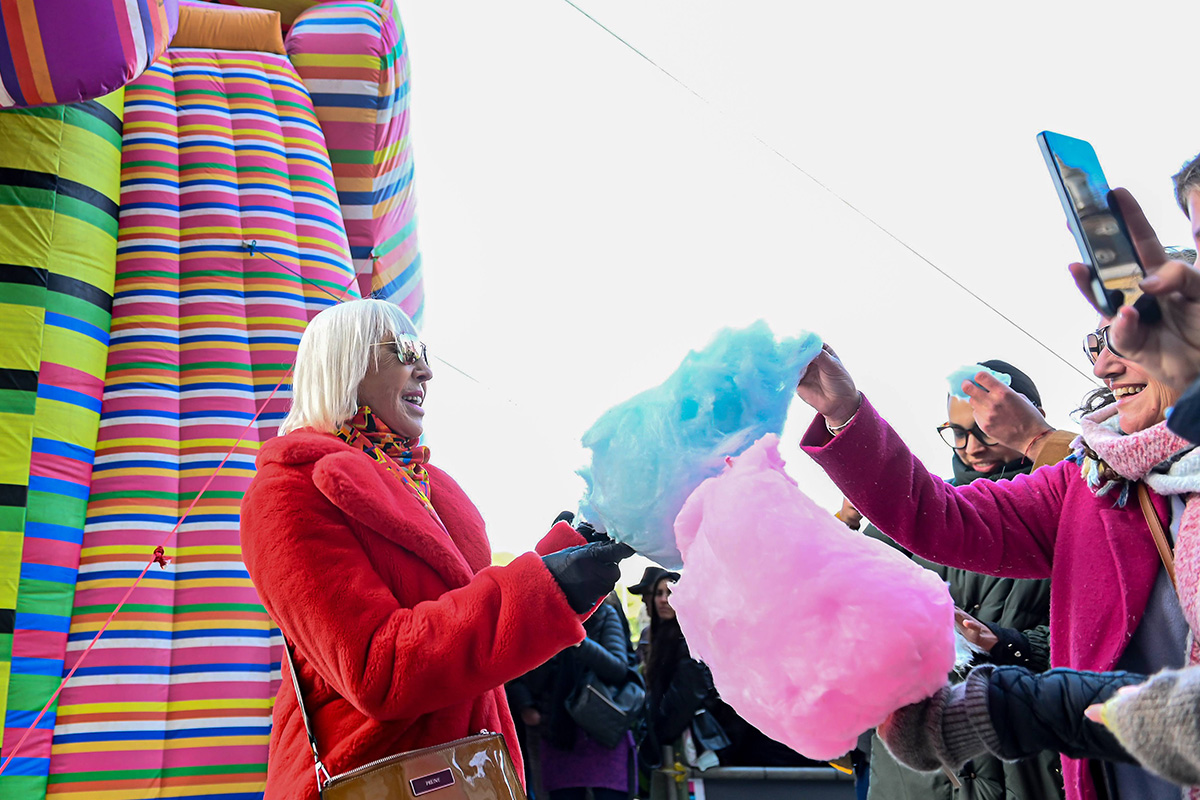Como parte de la programación de vacaciones de invierno, la gran artista argentina Marta Minujín vuelve al Palacio Libertad para llenar la Explanada de color con Golosina emocional, una monumental obra inflable que interpela los sentidos, promoviendo en el espectador una interacción lúdica y onírica.