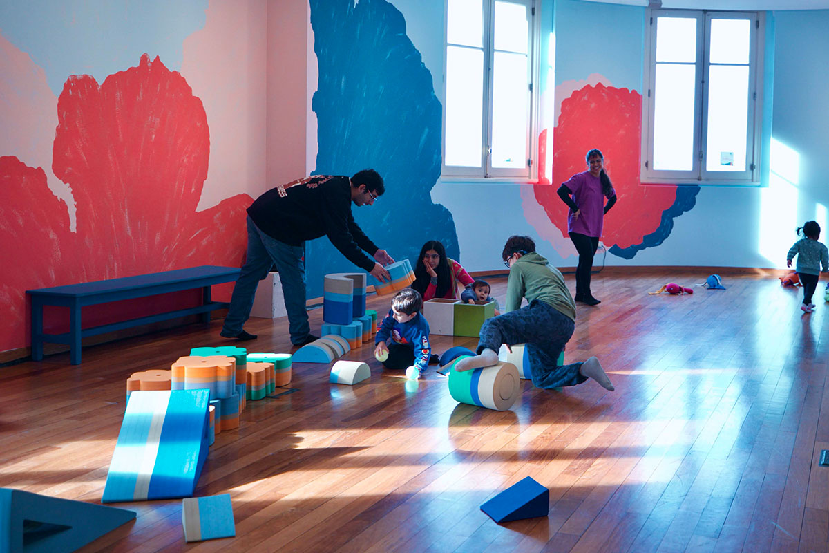 En una sala intervenida por el hermoso mural de la ilustradora Luz Preumayr, el espacio se encuentra preparado para recibir a niños de seis meses a tres años y cuenta con elementos de goma para trepar, apilar y mover.
